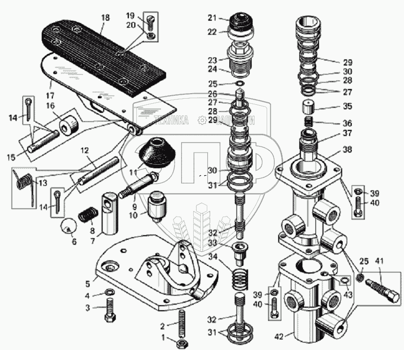 Каталог запасных частей к технике: БелАЗ-7823. Кран управления тормозами