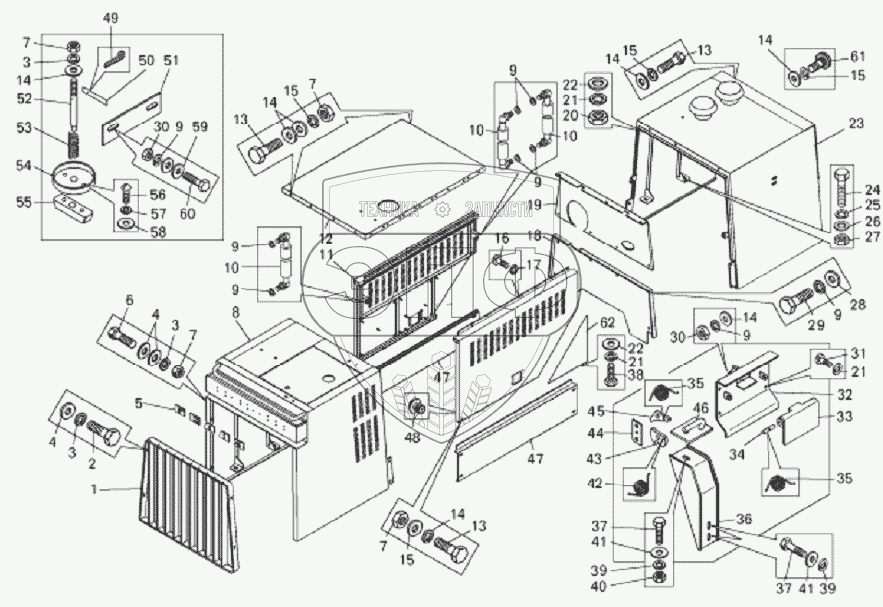Каталог запасных частей к технике: БелАЗ-7823. Установка капотов