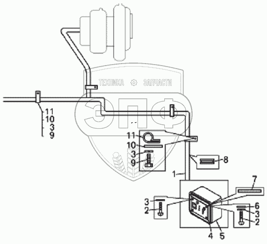 Каталог запасных частей к технике: БелАЗ-7823. Установка щитка управления подогревателя