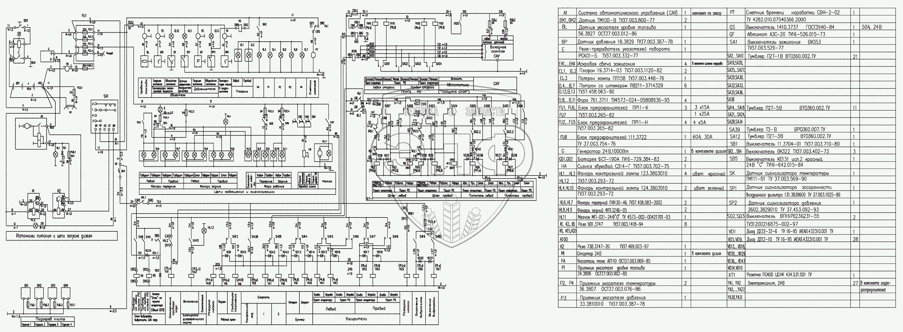 Каталог запасных частей к технике: Брянский Арсенал АсфК-3-02. Схема электрическая принципиальная