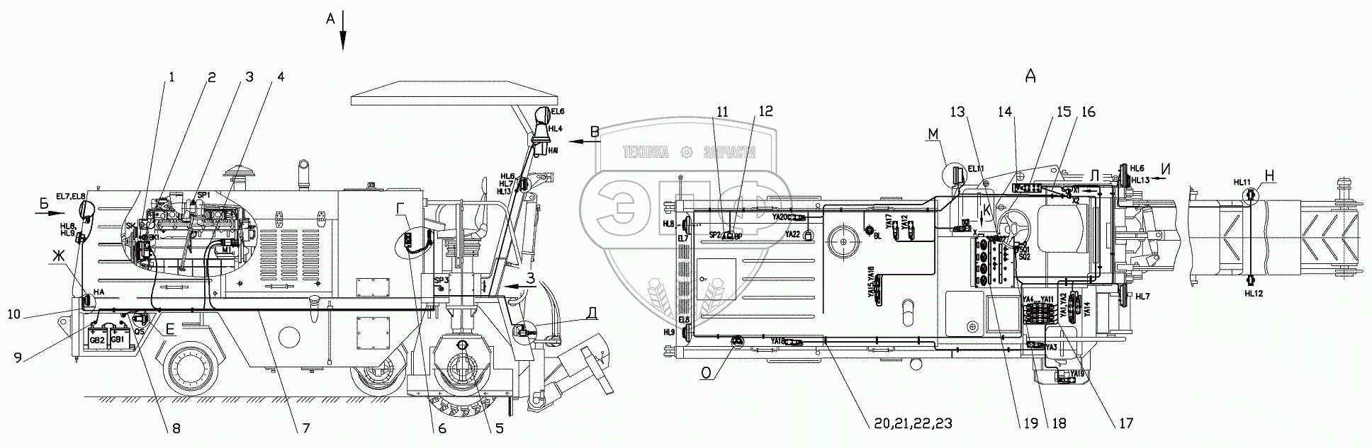 Каталог запасных частей к технике: Брянский Арсенал ФДХС-К-1000-01. Электрооборудование фрезы