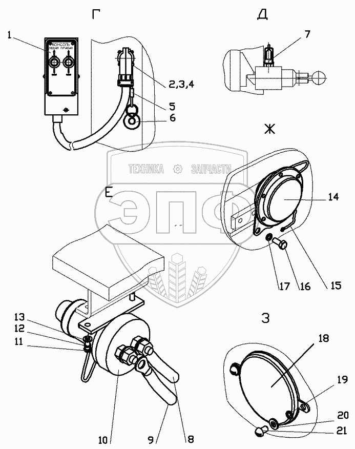 Каталог запасных частей к технике: Брянский Арсенал ФДХС-К-1000-01. Электрооборудование фрезы