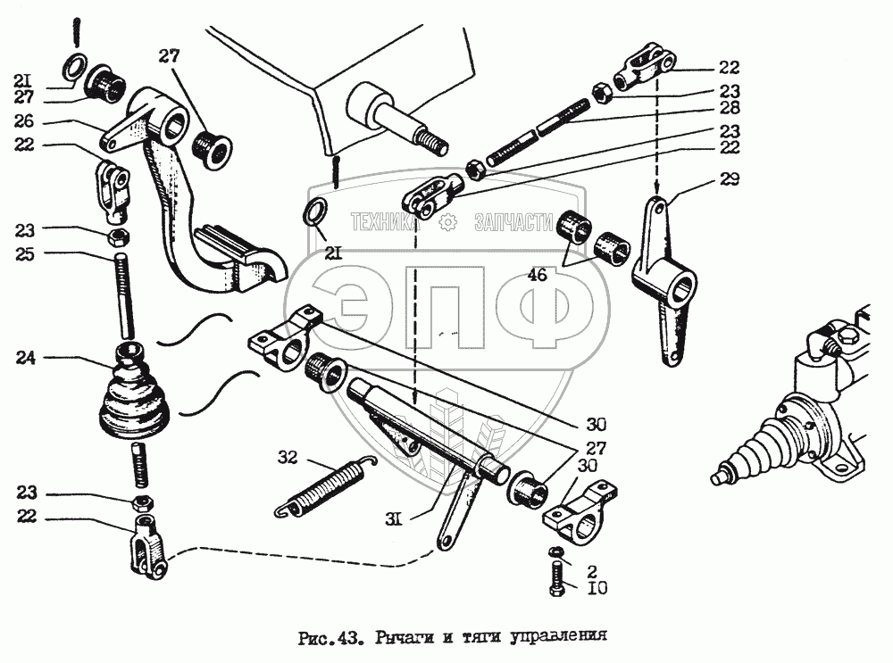 Каталог запасных частей к технике: Брянский Арсенал ГС-14.02. Рычаги и тяги управления