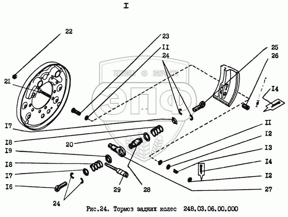 Каталог запасных частей к технике: Брянский Арсенал ГС-14.02. Тормоз задних колес