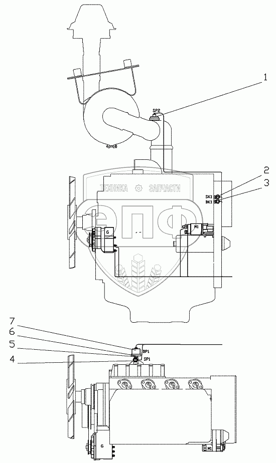 Каталог запасных частей к технике: Брянский Арсенал ГС-18.07. Установка датчиков на двигателе