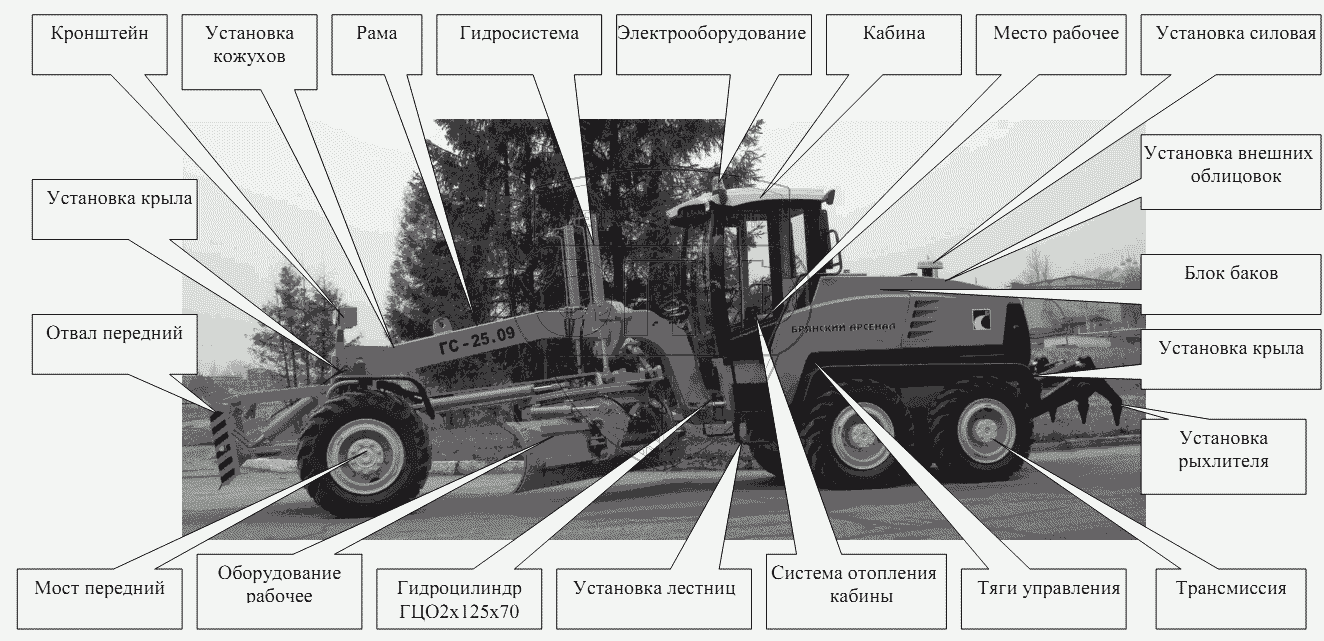 Каталог запасных частей к технике: Брянский Арсенал ГС-25.09. Расположение узлов и систем