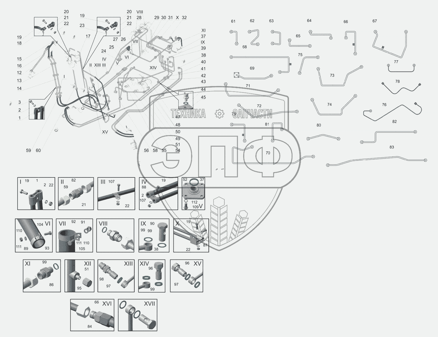 Каталог запасных частей к технике: Булат ЭО-2621B-3. Гидроразводка
