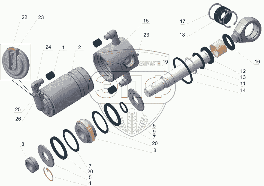 Каталог запасных частей к технике: Булат ЭО-2621B-3. Гидроцилиндр поворота