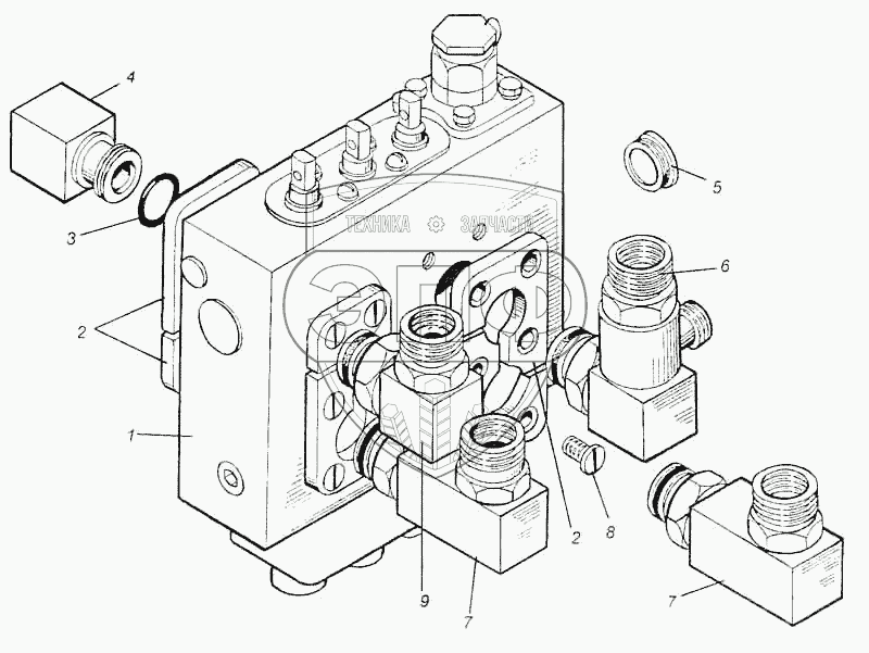 Каталог запасных частей к технике: Булат ЭО-2621B. Блок распределительный
