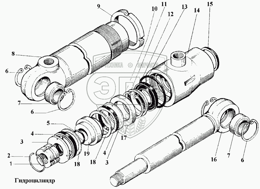 Каталог запасных частей к технике: Булат ЭО-2621В-3. Гидроцилиндр