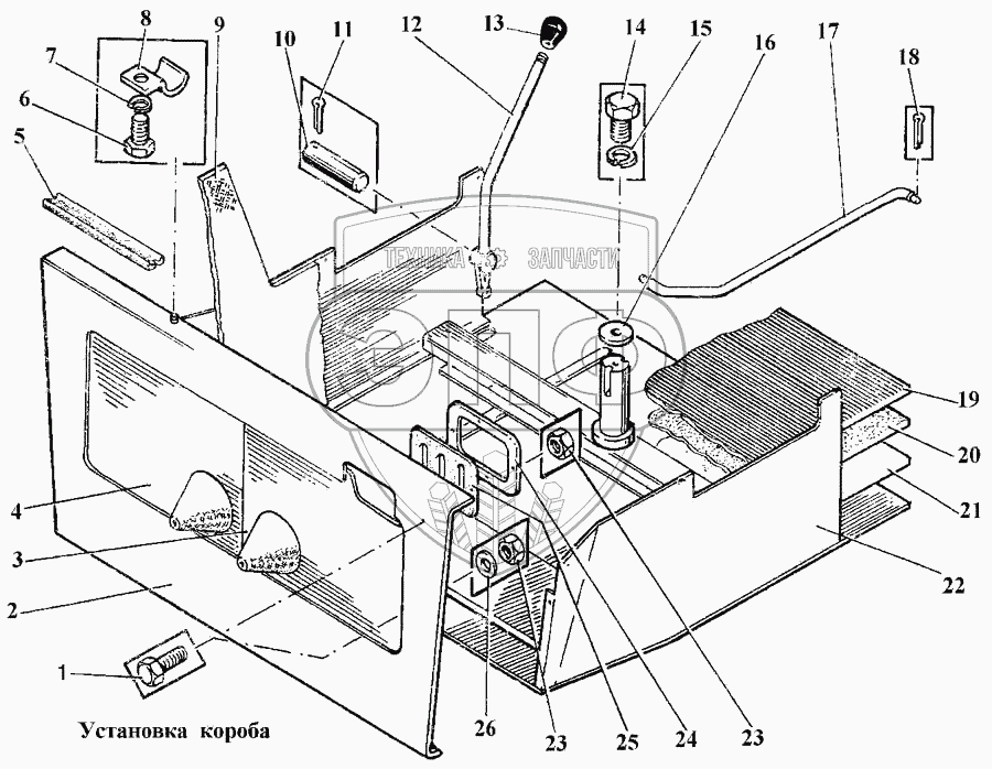Каталог запасных частей к технике: Булат ЭО-2621В-3. Установка короба