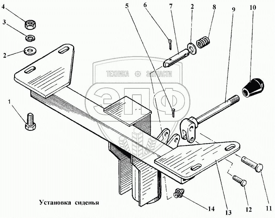 Каталог запасных частей к технике: Булат ЭО-2621В-3. Установка сиденья