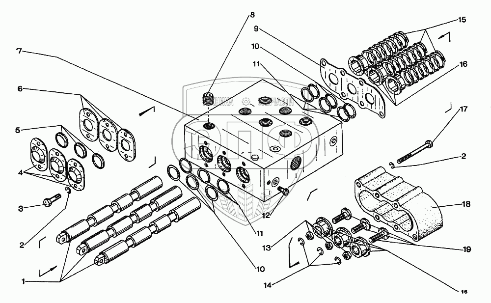 Каталог запасных частей к технике: Булат ЭО-2627. Гидрораспределитель трехзолотниковый без предохранительного клапана