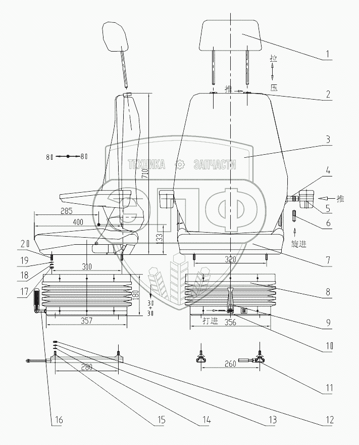 Каталог запасных частей к технике: ChengGong CG-956G. CGZY-3H Seat Assembly