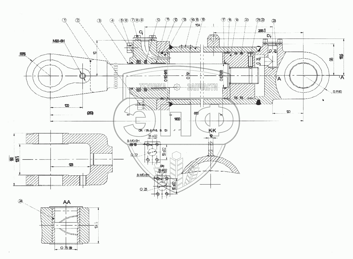 Каталог запасных частей к технике: ChengGong CG-958G. CF160X80/880ER/E-00B Lift Cylinder