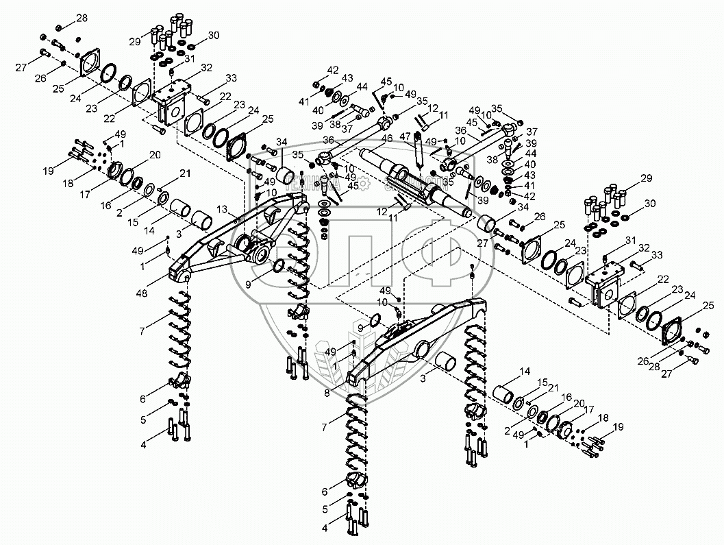 Каталог запасных частей к технике: ЧСДМ ДЗ-98В. Подвеска задних колес (Д395-0202000)