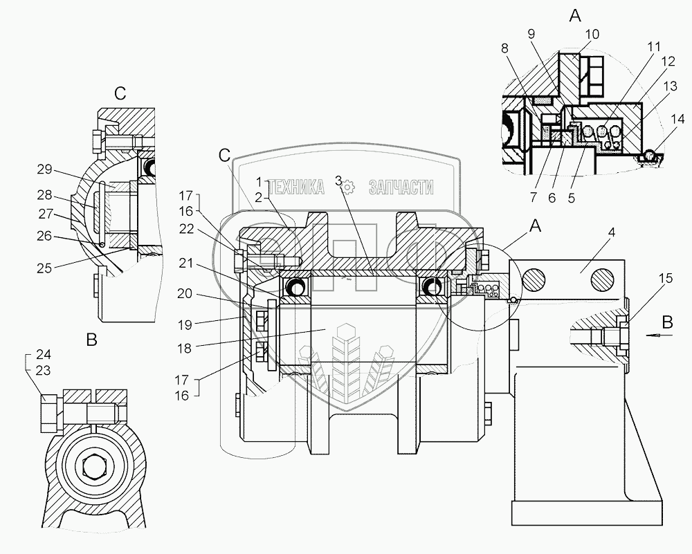 Каталог запасных частей к технике: ЧТЗ Бульдозер Б11. Каток поддерживающий
