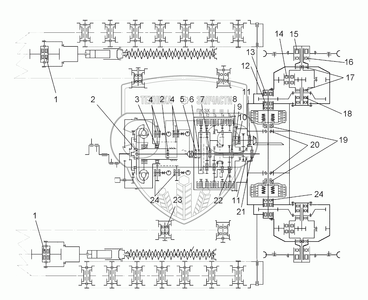 Каталог запасных частей к технике: ЧТЗ Бульдозер Б11. Схема расположения подшипников на тракторе