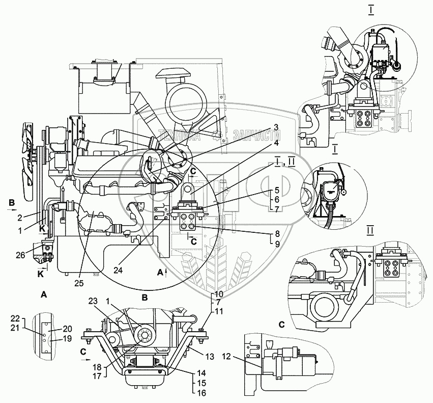 Каталог запасных частей к технике: ЧТЗ Бульдозер Б11. Установка двигателя