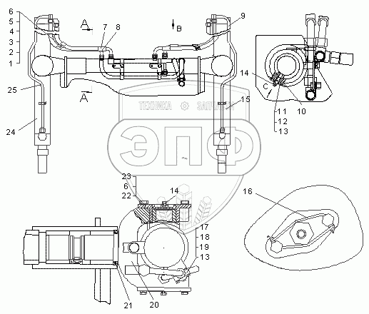 Каталог запасных частей к технике: ЧТЗ Бульдозер Б11. Установка гидроцилиндров