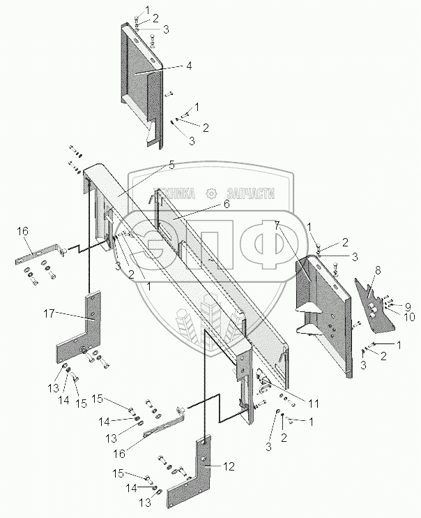 Каталог запасных частей к технике: ЧТЗ Бульдозер Б11. Установка кожухов