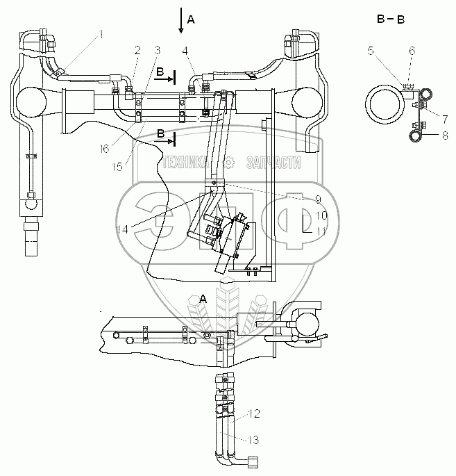 Каталог запасных частей к технике: ЧТЗ Бульдозер Б11. Установка передних трубопроводов