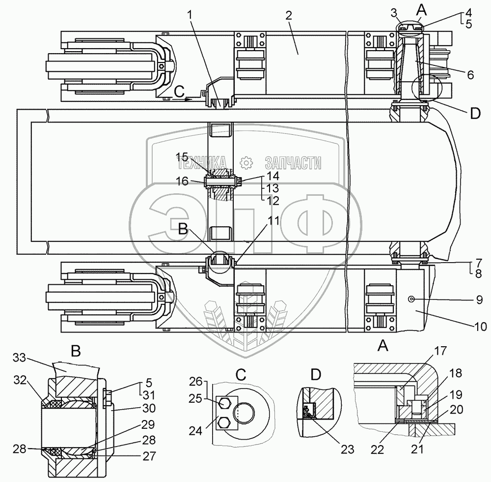 Каталог запасных частей к технике: ЧТЗ Бульдозер Б11. Установка тележек. Балка
