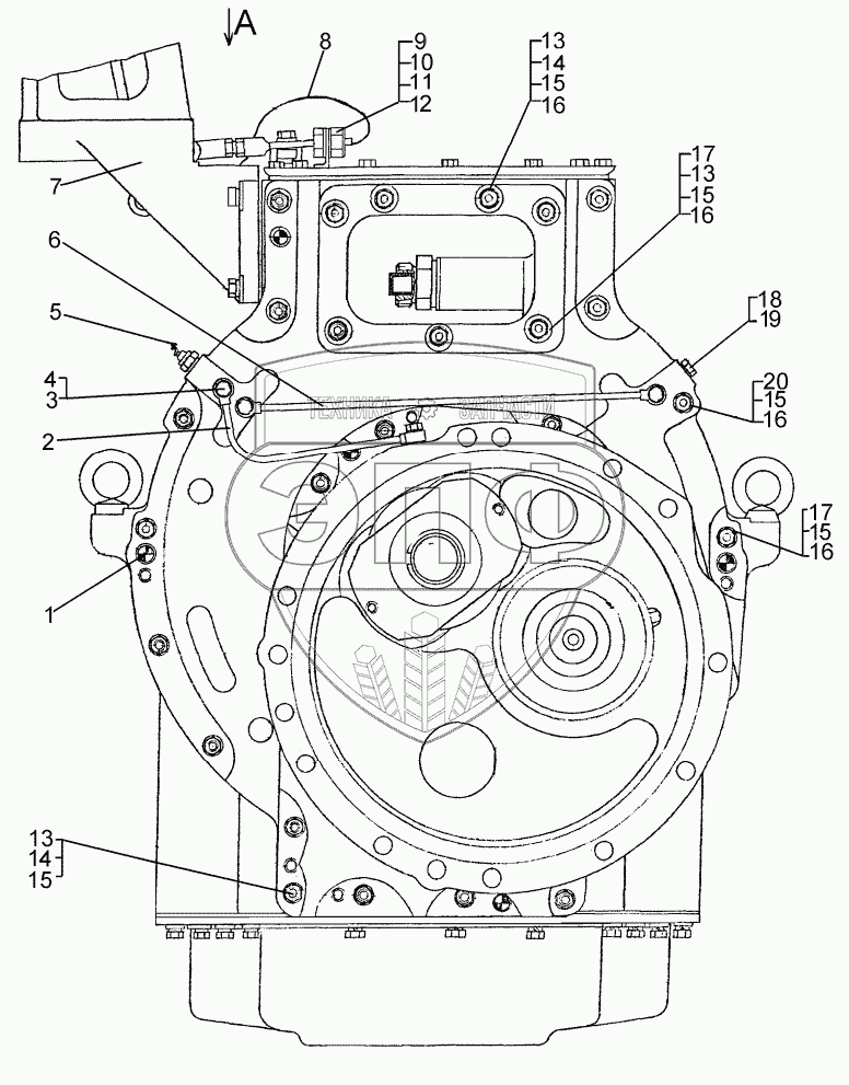 Каталог запасных частей к технике: ЧТЗ Бульдозер Б12. Коробка передач - детали крепления