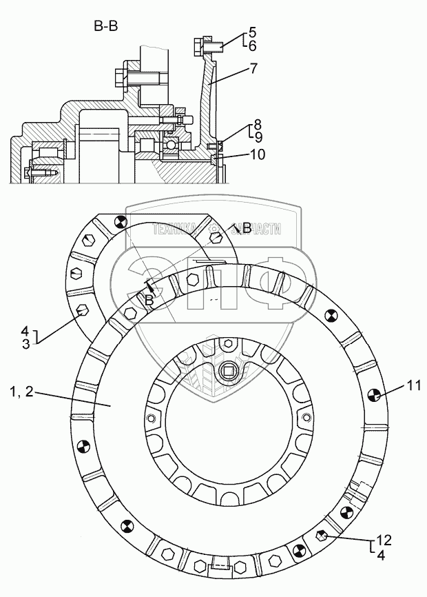 Каталог запасных частей к технике: ЧТЗ Бульдозер Б12. Установка бортовых редукторов