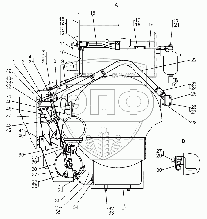 Каталог запасных частей к технике: ЧТЗ Бульдозер Б12. Установка подогревателя ПЖД-30Е
