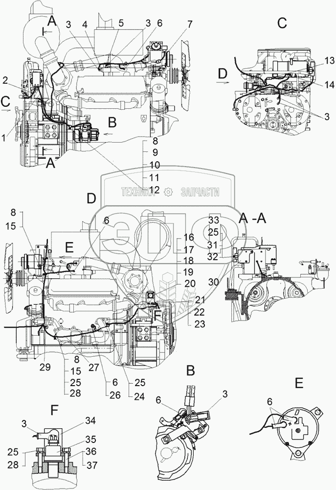 Каталог запасных частей к технике: ЧТЗ Бульдозер Б14. Электрооборудование двигателя ЯМЗ