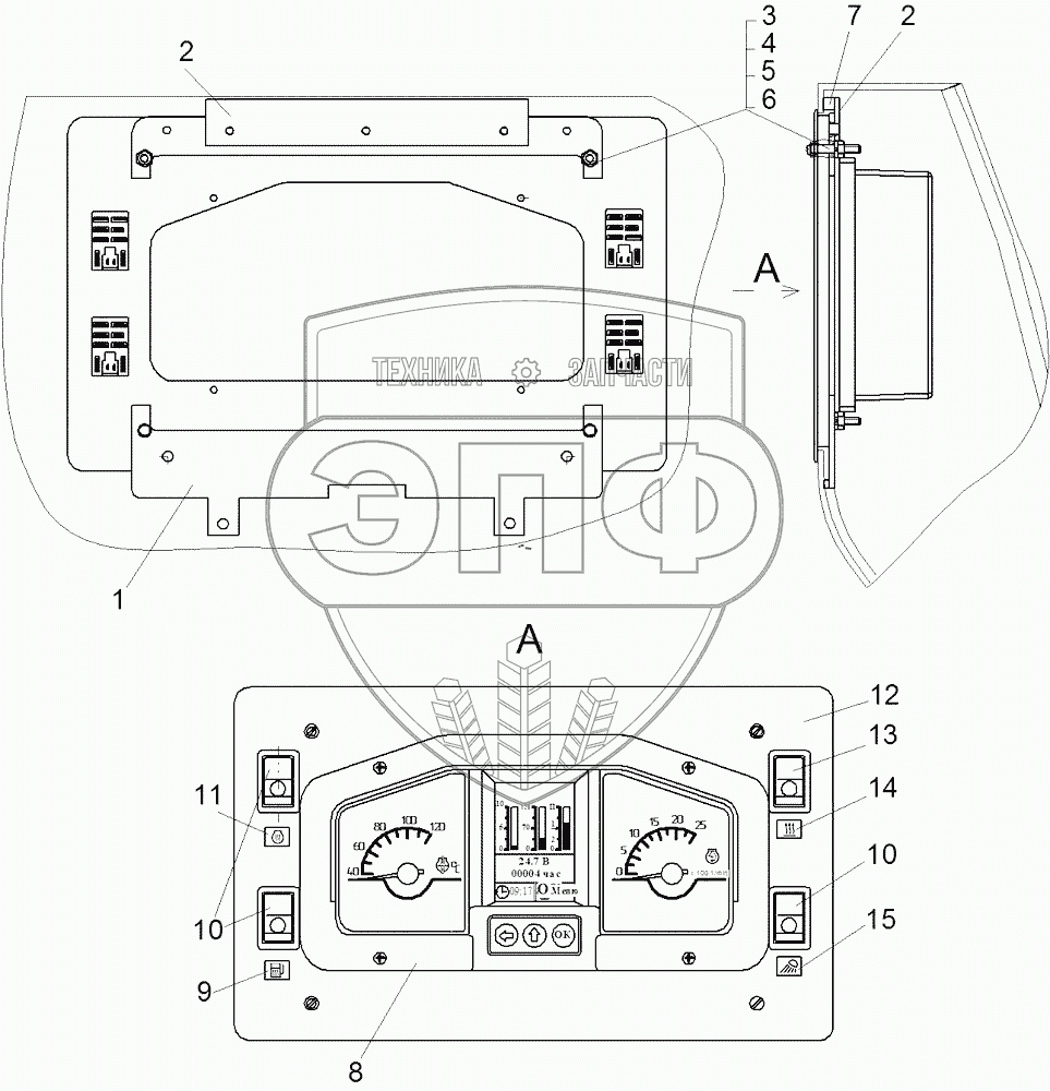Каталог запасных частей к технике: ЧТЗ Бульдозер Б14. Установка панели приборов