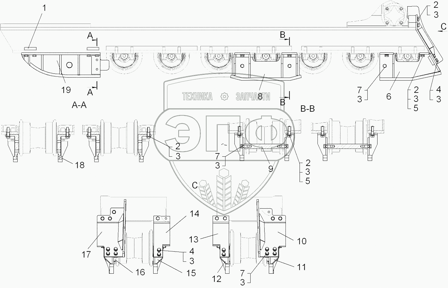 Каталог запасных частей к технике: ЧТЗ Бульдозер Б14. Установка щитков от схода гусениц