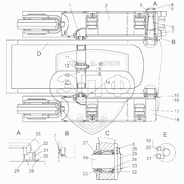 Каталог запасных частей к технике: ЧТЗ Бульдозер Б14. Установка тележек. Балка