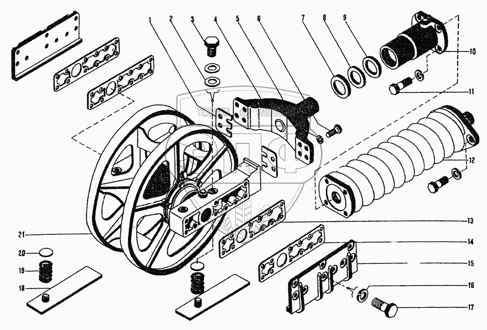 Каталог запасных частей к технике: ЧТЗ ДЭТ-250М2. Колесо направляющее с натяжным механизмом