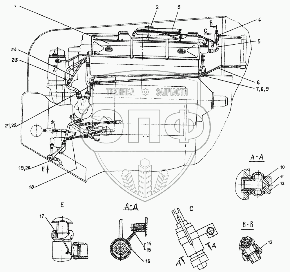 Каталог запасных частей к технике: ЧТЗ ДЭТ-250М2. Система охлаждения двигателя