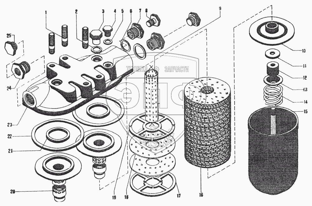 Каталог запасных частей к технике: ЧТЗ ДЭТ-250М2. Топливный фильтр