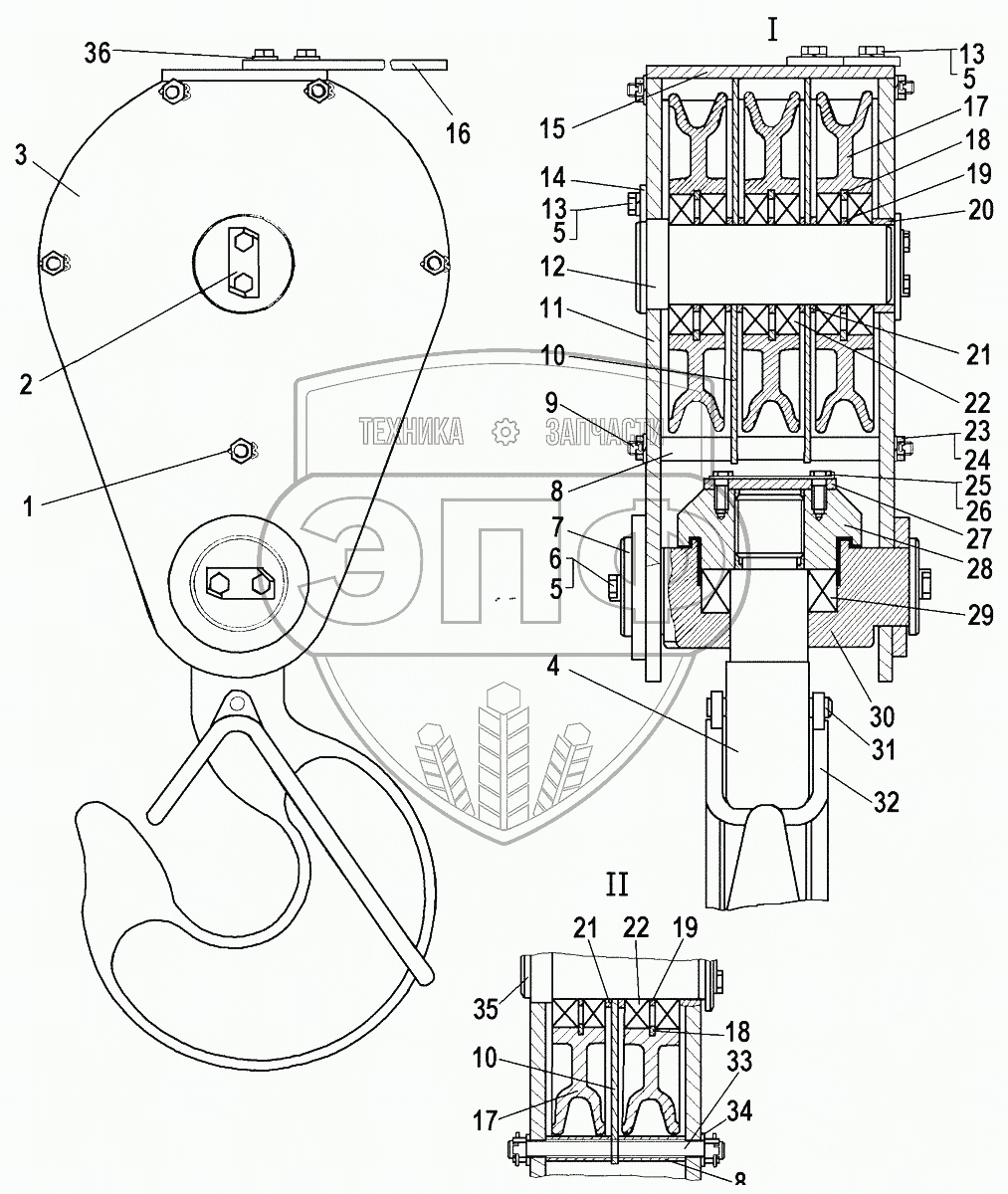 Каталог запасных частей к технике: ЧТЗ Кран ТР-20, ТР-12. Блок подвижный