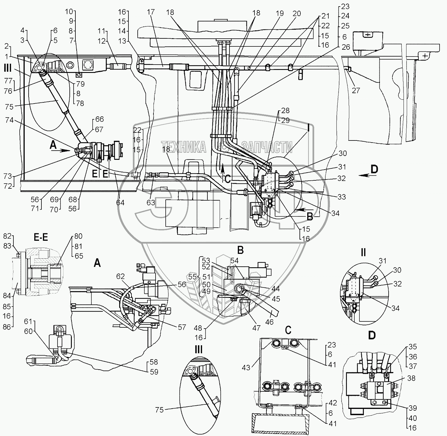 Каталог запасных частей к технике: ЧТЗ Кран ТР-20, ТР-12. Гидросистема трубоукладчика