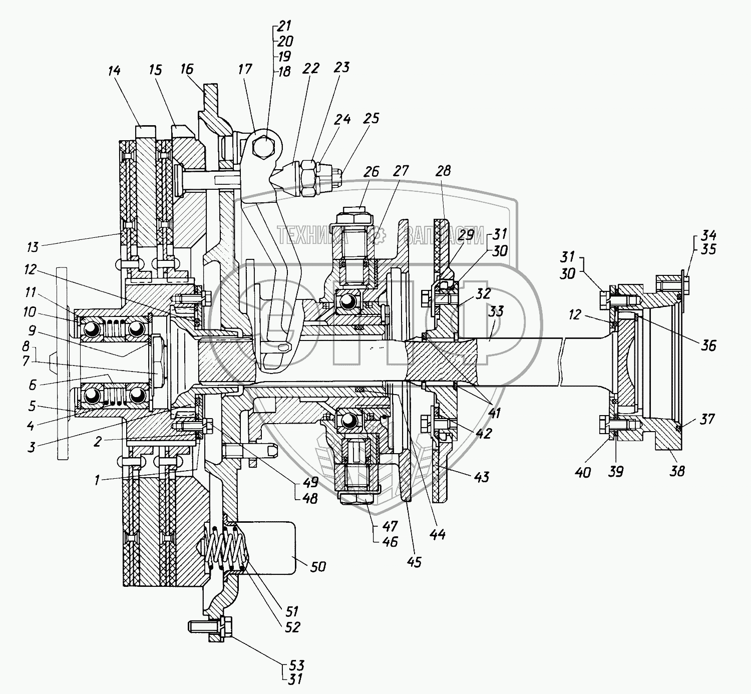 Каталог запасных частей к технике: ЧТЗ Кран ТР-20, ТР-12. Муфта сцепления