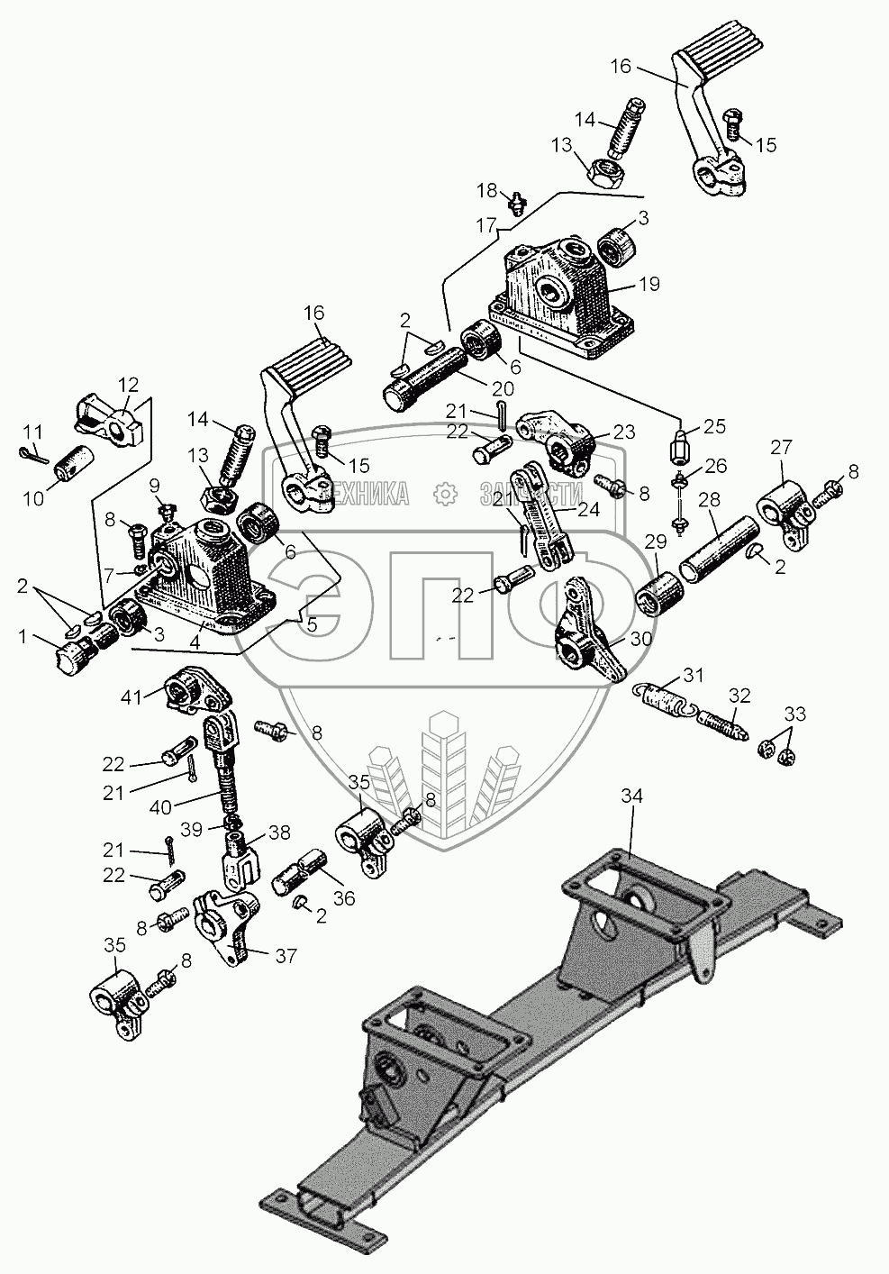 Каталог запасных частей к технике: ЧТЗ Кран ТР-20, ТР-12. Установка педалей