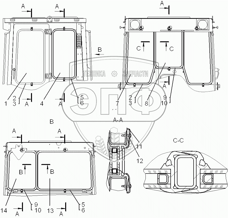 Каталог запасных частей к технике: ЧТЗ Кран ТР-20, ТР-12. Установка стеклопакетов
