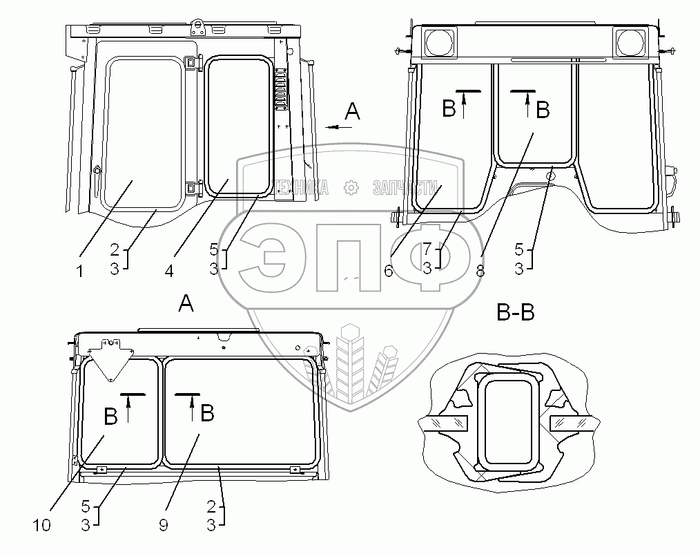 Каталог запасных частей к технике: ЧТЗ Кран ТР-20, ТР-12. Установка стекол