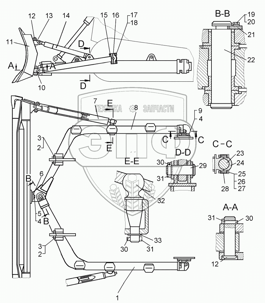 Каталог запасных частей к технике: ЧТЗ Рабочее оборудование Б10М. Оборудование бульдозерное 10Д