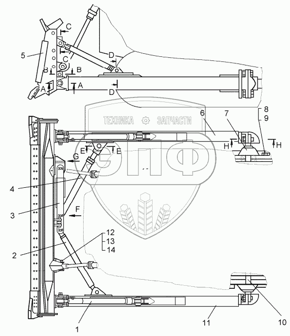 Каталог запасных частей к технике: ЧТЗ Рабочее оборудование Б10М. Оборудование бульдозерное 10В4