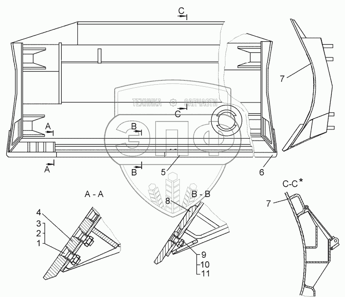 Каталог запасных частей к технике: ЧТЗ Рабочее оборудование Б10М. Отвал