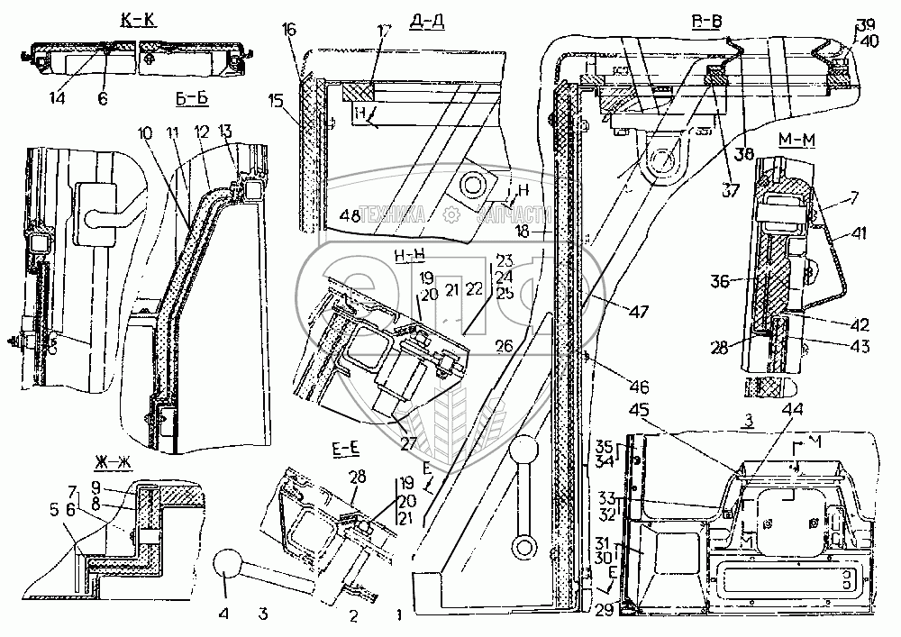 Каталог запасных частей к технике: ЧТЗ Т-10.02. Кабина (продолжение)