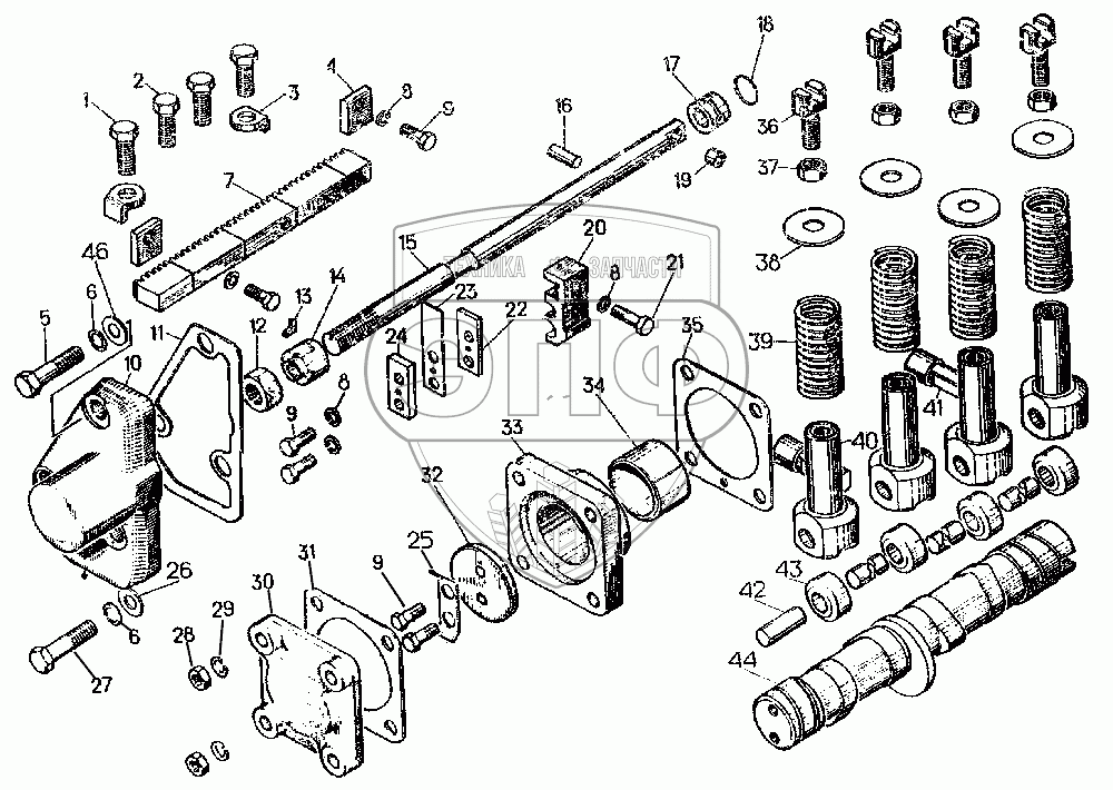 Каталог запасных частей к технике: ЧТЗ Т-10.02. Механизм привода плунжеров