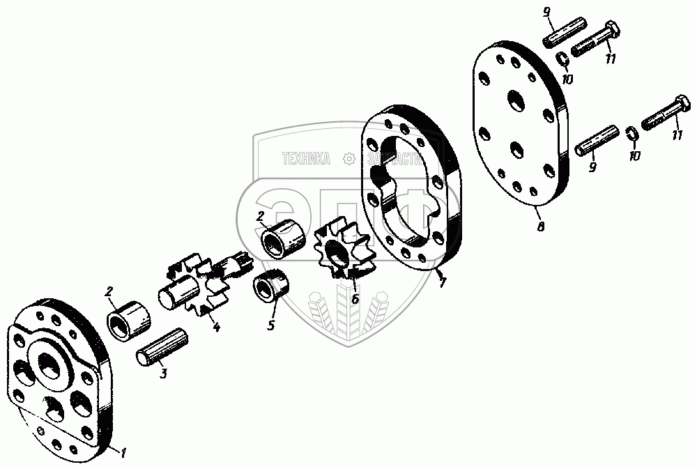 Каталог запасных частей к технике: ЧТЗ Т-10.02. Насос шестеренный НМШ-25