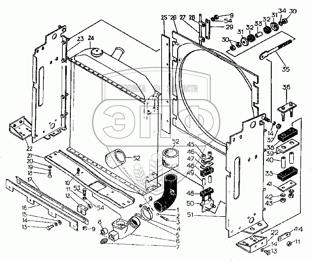 Каталог запасных частей к технике: ЧТЗ Т-10.02. Радиатор с деталями крепления